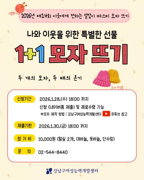 [½Åµ¿¾Æ¹æ¼Û °­³²±¸=À̽ŵ¿±âÀÚ] ²ÞÀÌ ¸ðÀÌ´Â µµ½Ã, ¹Ì·¡¸¦ ±×¸®´Â °­³²±¸°¡ ÁֹεéÀÌ Á÷Á¢ ¸¸µç ÅиðÀÚ¸¦ ¾î¸£½Å°ú Àå¾ÖÀÎ µî ¼Ò¿Ü°èÃþ¿¡°Ô Àü´ÞÇÏ´Â ¡®µû½º¹Ì ¸ðÀÚ ¶ß±â¡¯ Âü°¡ÀÚ¸¦ 1¿ù 28ÀϱîÁö ¸ðÁýÇÑ´Ù. ÀÌ Çà»ç´Â °­³²±¸¿©¼º´É·Â°³¹ß¼¾ÅÍ ÇнÀµ¿¾Æ¸® ȸ¿øµéÀÌ ¡¦