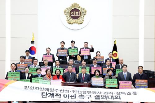 [½Åµ¿¾Æ¹æ¼Û ÀÎõ=À±¹Î½Ä±âÀÚ]ÀÎõ±¤¿ª½ÃÀÇȸ°¡ Á¤ºÎ¸¦ ÇâÇØ ¡°ÀÎõÁö¹æÇؾç¼ö»êû°ú ÀÎõÇ׸¸°ø»çÀÇ °ü¸®¡¤°¨µ¶±Ç µî ÁÖ¿ä ±â´ÉÀ» ÀÎõ±¤¿ª½Ã·Î ´Ü°èÀûÀ¸·Î À̰üÇ϶󡱰í Ã˱¸Çß´Ù. ÀÎõ½ÃÀÇȸ´Â 12ÀÏ ¡®Á¦306ȸ ÀÓ½Ãȸ¡¯ Æóȸ ÈÄ °áÀÇ´ëȸ¸¦ ¿­°í, ¡®ÀÎõÁö¹æÇؾ硦